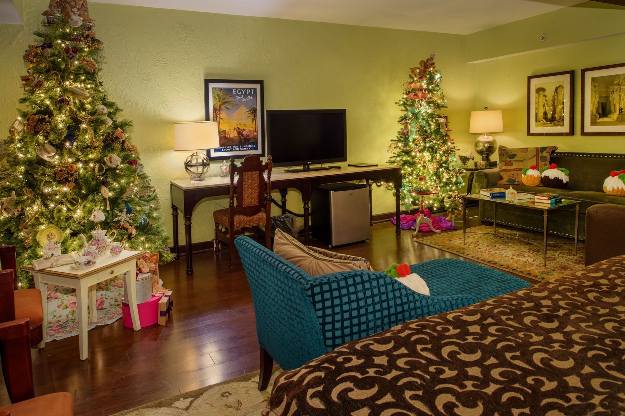 Each Suite will be festively decorated with a Christmas Tree, Garland, and a Wreath. Our Exclusive Decorated Suite Package includes a copy of the book inspired the Suite for you to take home, complimentary breakfast, Wi-Fi, and a special gift from The Cheshire for your family.
