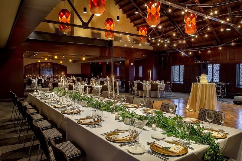 Looking for a reception venue for up to 250 guests? Upstairs at The Cheshire is an excellent option. Located on the second floor of Boundary, the space features a stunning vaulted ceiling with dark wood beams, original to this historic landmark building. Accented with contemporary Italian light fixtures, the unique room is like no other wedding and event venue in St. Louis.